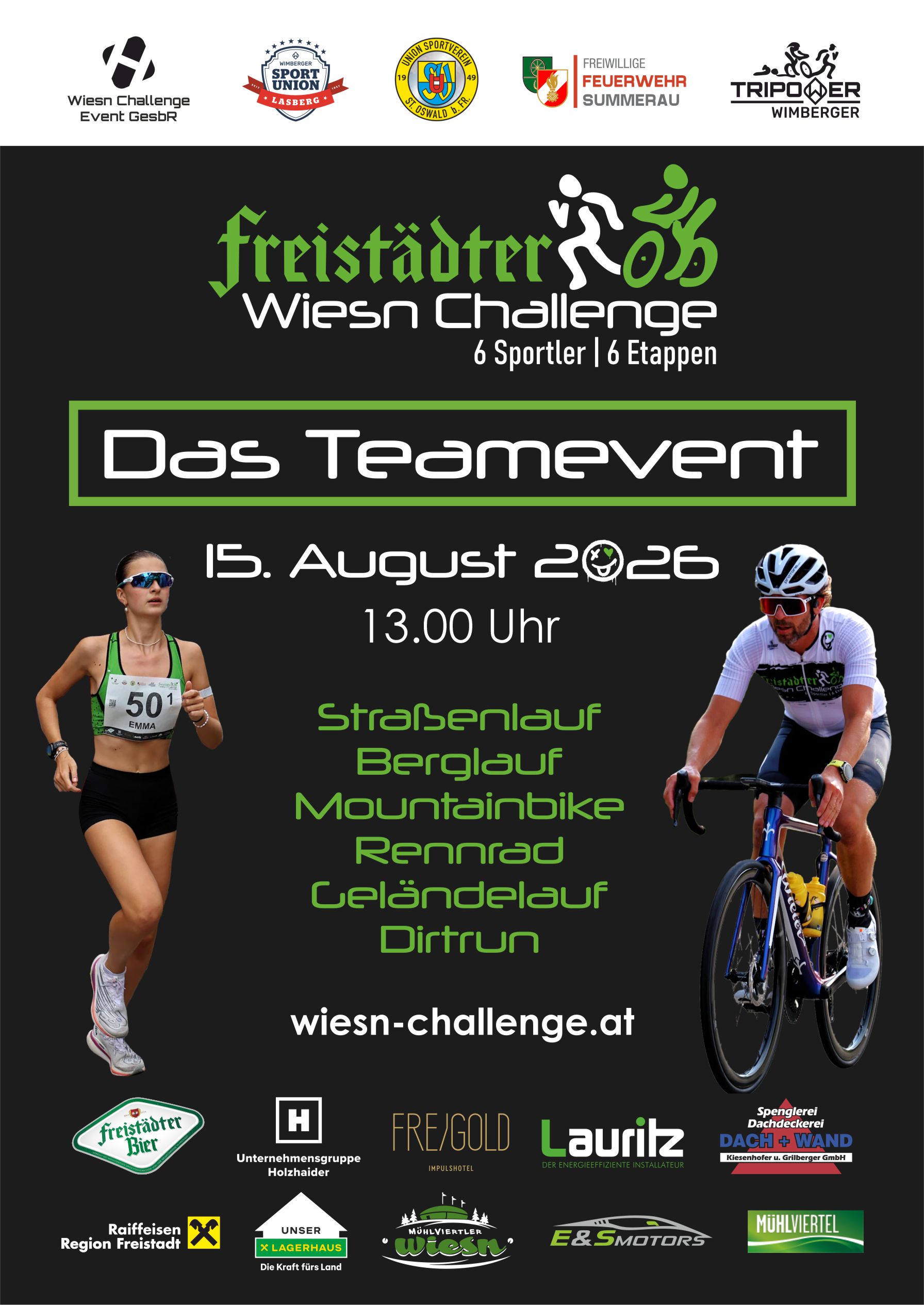 Am 15. August 2026 geht die 3. Freistädter Wiesn Challenge in und rund um Freistadt über die Bühne – ein sportliches Highlight mitten im Mühlviertel!